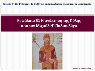31. Η ανάκτηση της Πόλης από τον Μιχαήλ Η΄Παλαιολόγο