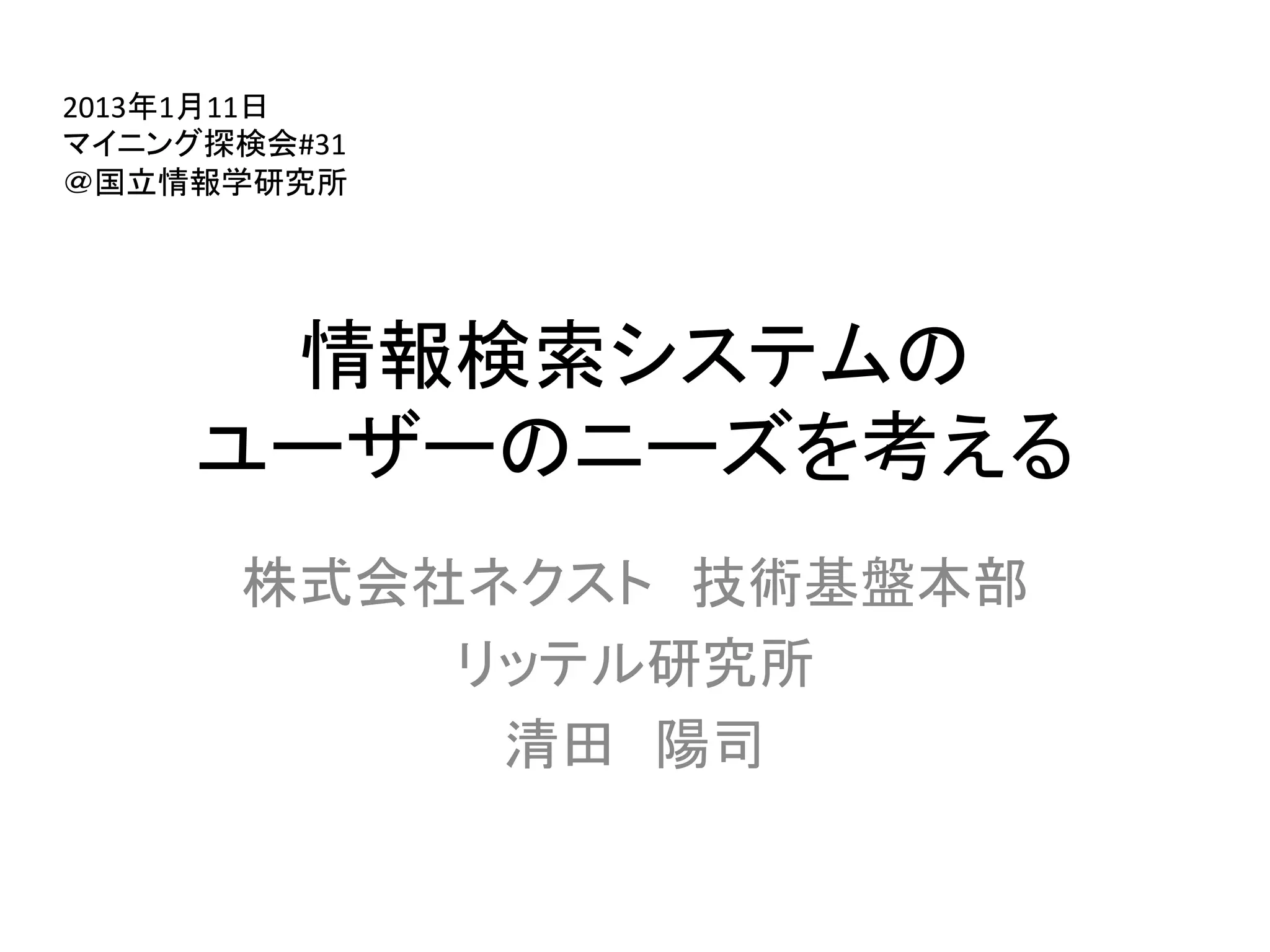 マイニング探検会#31 情報検索システムのユーザーのニーズを考える