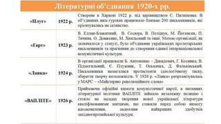 1927 р. - створення Всеукраїнської спілки пролетарських письменників;
