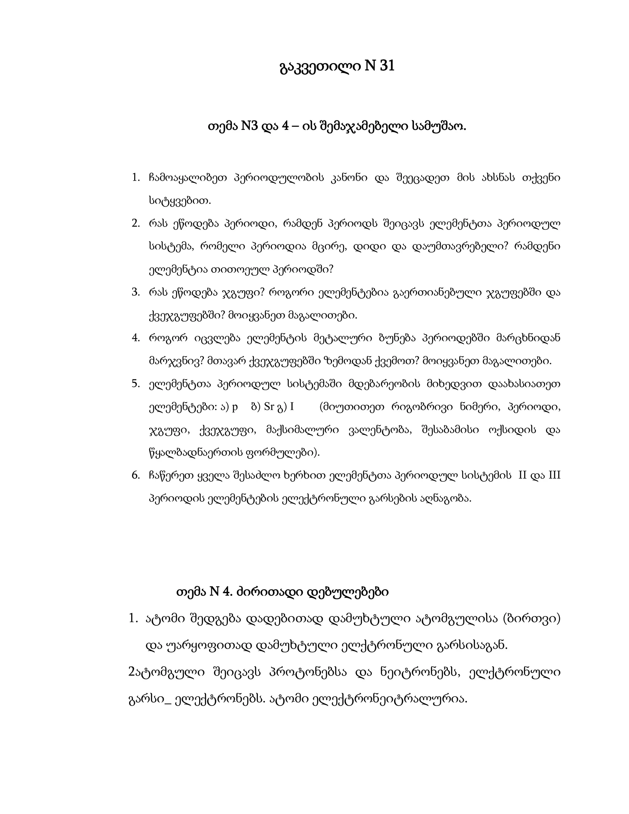 თემა N3 და 4 – ის შემაჯამებელი სამუშაო.