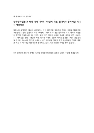 동아시아 탈 원전․자연에너지 - 311인 선언