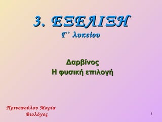 3. ΕΞΕΛΙΞΗ Γ΄λυκείου Δαρβίνος Η φυσική επιλογή Πρινοπούλου Μαρία Βιολόγος