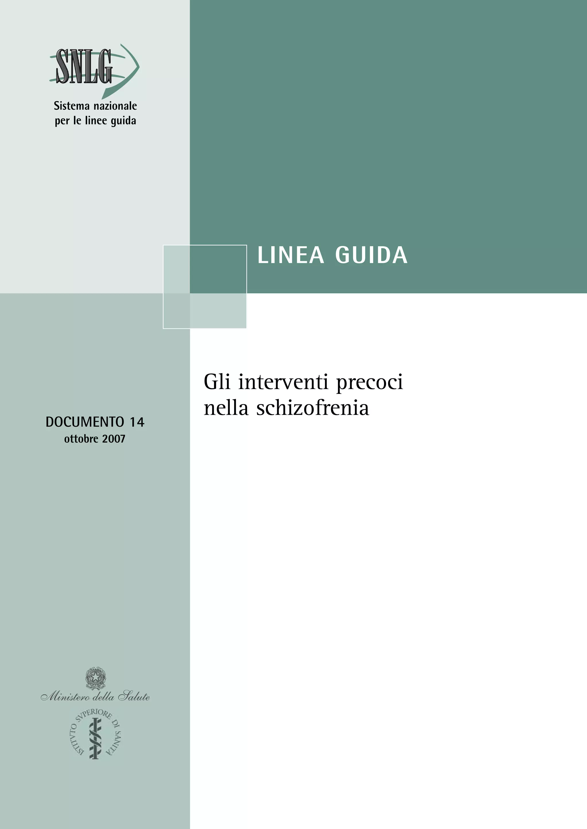 Le linee guida sugli interventi precoci nella schizofrenia offrono raccomandazioni basate su prove scientifiche per migliorare la qualità dell'assistenza ai pazienti affetti da questa malattia, che colpisce circa 150.000 persone in Italia. Il documento sottolinea l'importanza sia della diagnosi precoce che del trattamento tempestivo, distinguendo tra soggetti a rischio e quelli al primo episodio psicotico. Sono raccomandati programmi di identificazione e trattamento, l'uso di scale di valutazione e terapia farmacologica per garantire un'assistenza integrata e multidisciplinare.