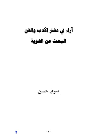 The document discusses identity and arts in two chapters. The first chapter talks about characters and issues, including discussions of identity. The second chapter covers various art forms like stories, films, opera, and art. It provides examples and perspectives on different artistic works and their exploration of identity.