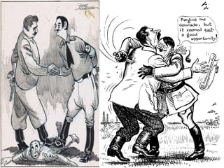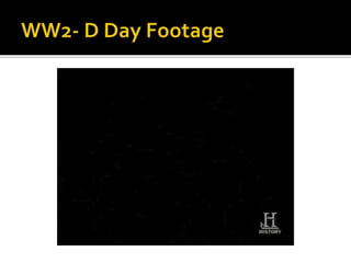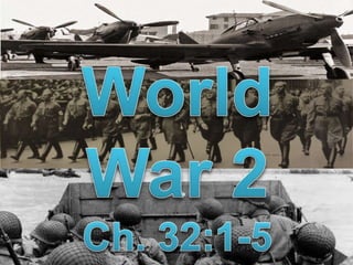 The document discusses key events of World War 2 in Europe and Asia. It describes Germany's invasion of Poland in 1939 which marked the start of the war, as well as Germany's swift defeat of France in 1940 through the use of blitzkrieg tactics. It also discusses the Holocaust and the systematic murder of 6 million Jews by Nazi Germany. The summary ends with the Allied invasion of Normandy on D-Day in 1944 and Hitler's failed counteroffensive which marked the beginning of the end for Nazi Germany.
