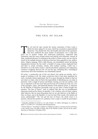 1. The debate around the veil in France crystallized around the notion of the sign and its ostentatious nature. However, from an Islamic theological perspective, the veil is not a sign but rather something that partially or totally occulted the feminine body because the body indicates too much.