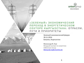 Документ рассматривает энергетический сектор Кыргызстана и представляет идеи для перехода на 'зеленую' экономику в этой области. Основные проблемы включают устаревшую инфраструктуру, высокие потери тепла и зависимость от угля и газа, в то время как предлагаются пути для повышения энергоэффективности и использования возобновляемых источников энергии. Также акцентируется внимание на необходимости инвестиций и стимулирования технологий для устойчивого развития.