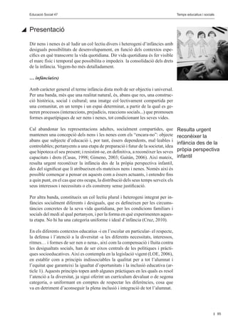 capacitats i drets (Casas, 1998; Gimeno, 2003; Gaitán, 2006). Així mateix, infantil