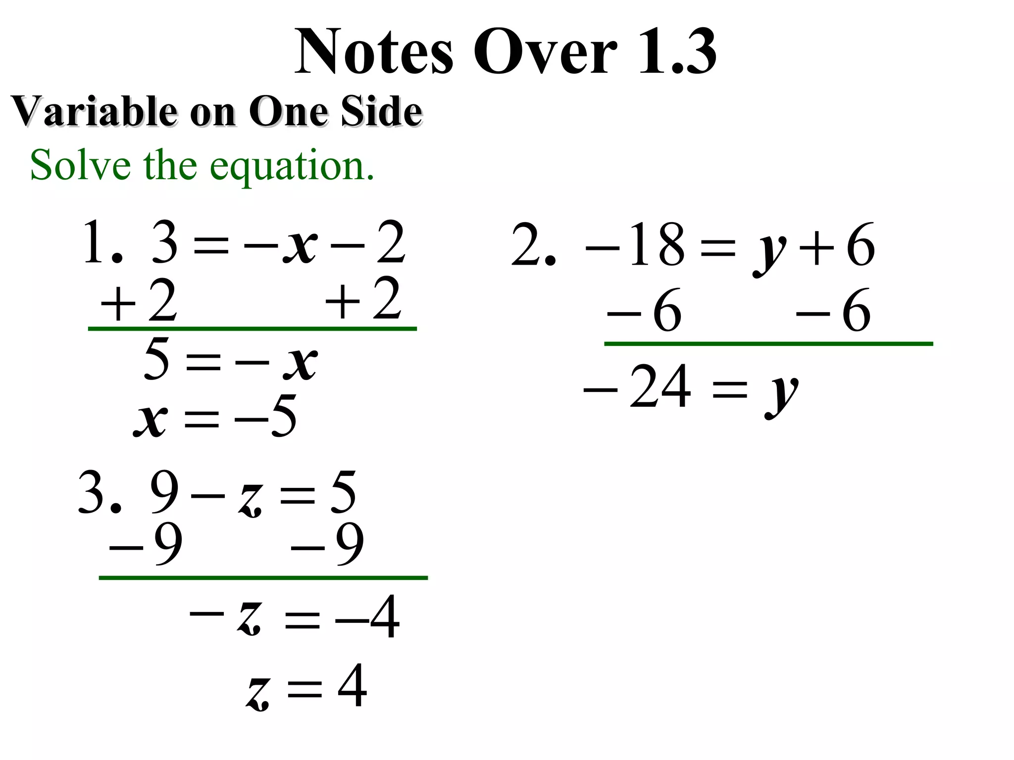 This document contains step-by-step solutions to various equations involving variables on one or both sides. The equations include integers, fractions, and variables with exponents. The solutions demonstrate techniques such as isolating the variable, using the distributive property, and rationalizing denominators.