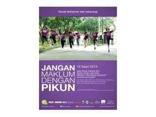 World Alzheimer's Month 2013 reached approximately 150 million people via extensive media coverage across 100 platforms, including print, radio, TV, and online. A brochure highlighting 10 warning signs was distributed with support from the vice governor of Jakarta. The advocacy was further endorsed by the vice minister of health in March 2014.
