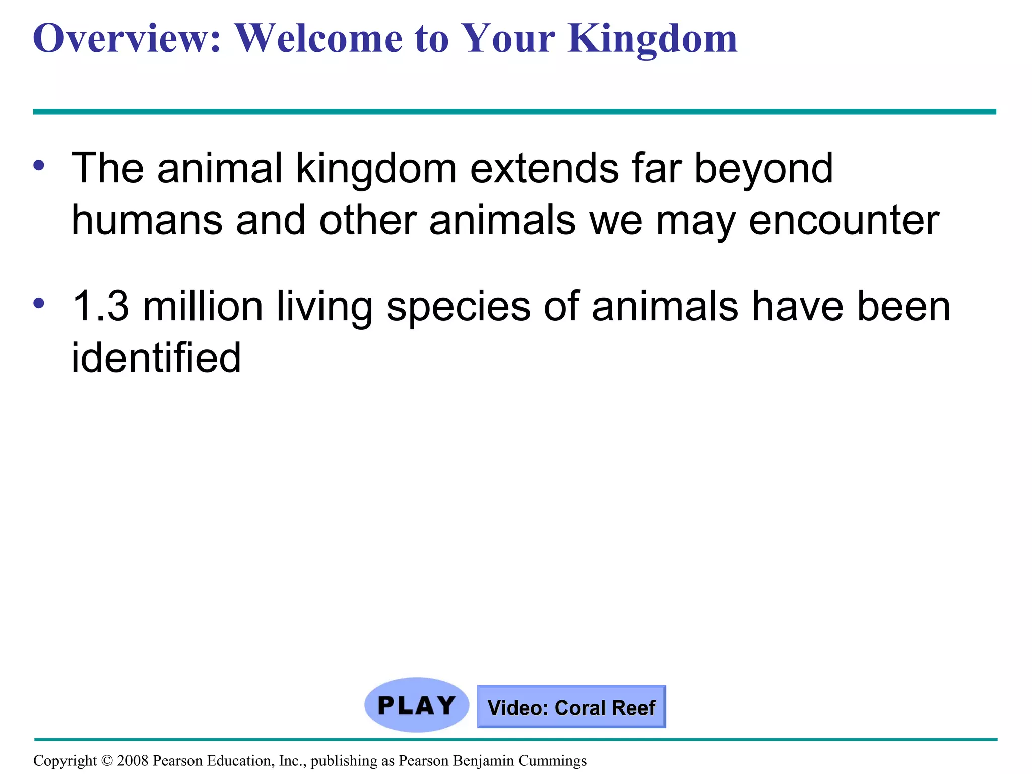 This document provides an overview of animal diversity and phylogeny from a chapter in a biology textbook. It discusses the key characteristics of animals, including being multicellular heterotrophs. It outlines the major eras in the evolutionary history of animals, from the earliest fossils to the Cambrian explosion to modern groups. It also describes differences in developmental processes between protostomes and deuterostomes. Two competing hypotheses for the phylogenetic relationships between animal phyla are presented, based on morphological vs molecular data.