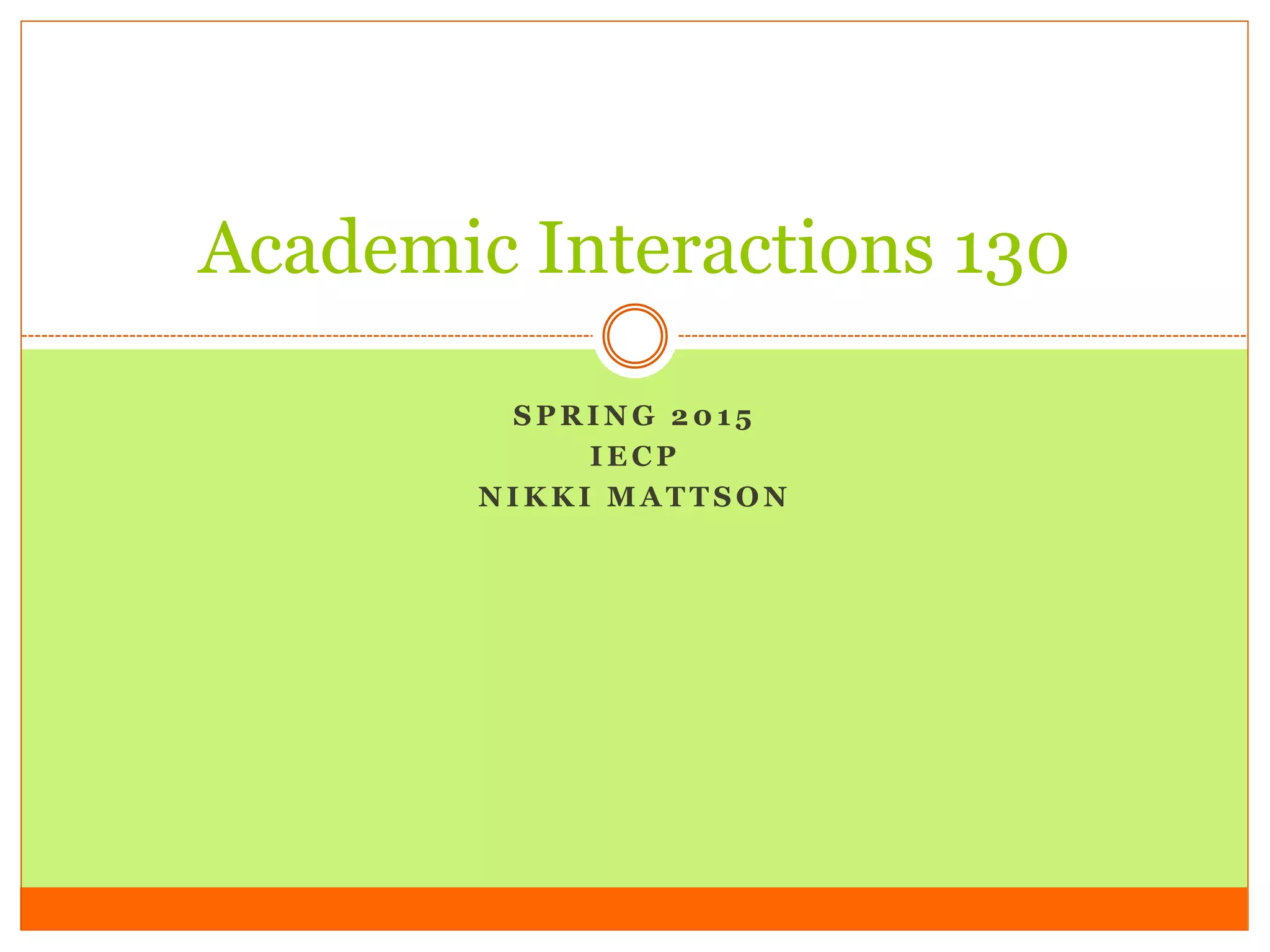 This document provides information about an upcoming group presentation assignment for Nikki Mattson's Academic Interactions 130 class. It includes details about the assignment such as having groups of 3-5 students research challenges IECP students face transitioning to an American university using information from PSU class observations and interviews. Students are asked to propose solutions and address counterarguments. Guidelines are provided on creating a 7-12 minute video presentation with slides. The document also includes class discussion questions to help students prepare and instructions for choosing groups and writing a contract to guide their collaboration.