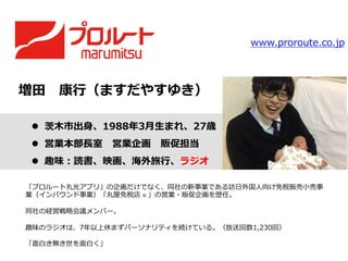 ありがとうございました。 (株)スタジオキャンビー 代表取締役 神⼾戸 貴弘 (株)プロルート丸光 営業本部⻑⾧長室 増⽥田 康⾏行行 Copyright