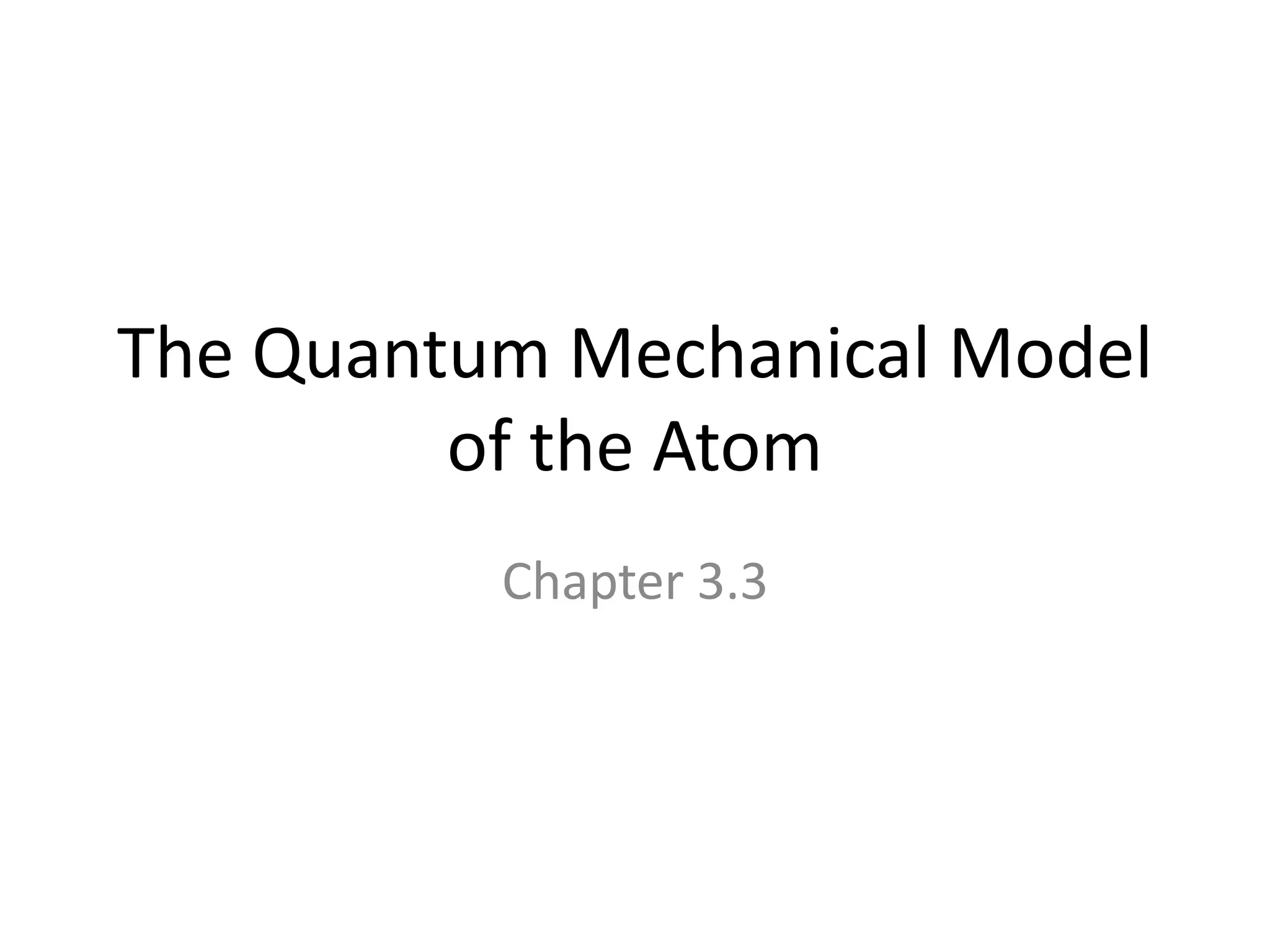 The quantum mechanical model of the atom developed from the ideas of three physicists: Erwin Schrodinger, Louis de Broglie, and Werner Heisenberg. De Broglie and Schrodinger proposed that electrons have both particle and wave properties, resembling standing waves around the nucleus. Only certain orbits allow an integer number of wavelengths to fit, determining electron energy levels. Schrodinger developed an equation to calculate these quantized energy levels. Heisenberg's uncertainty principle holds that the exact position and momentum of an electron cannot be known simultaneously. Orbitals describe the probability of finding an electron in a region as determined by wave functions, rather than definite orbits.