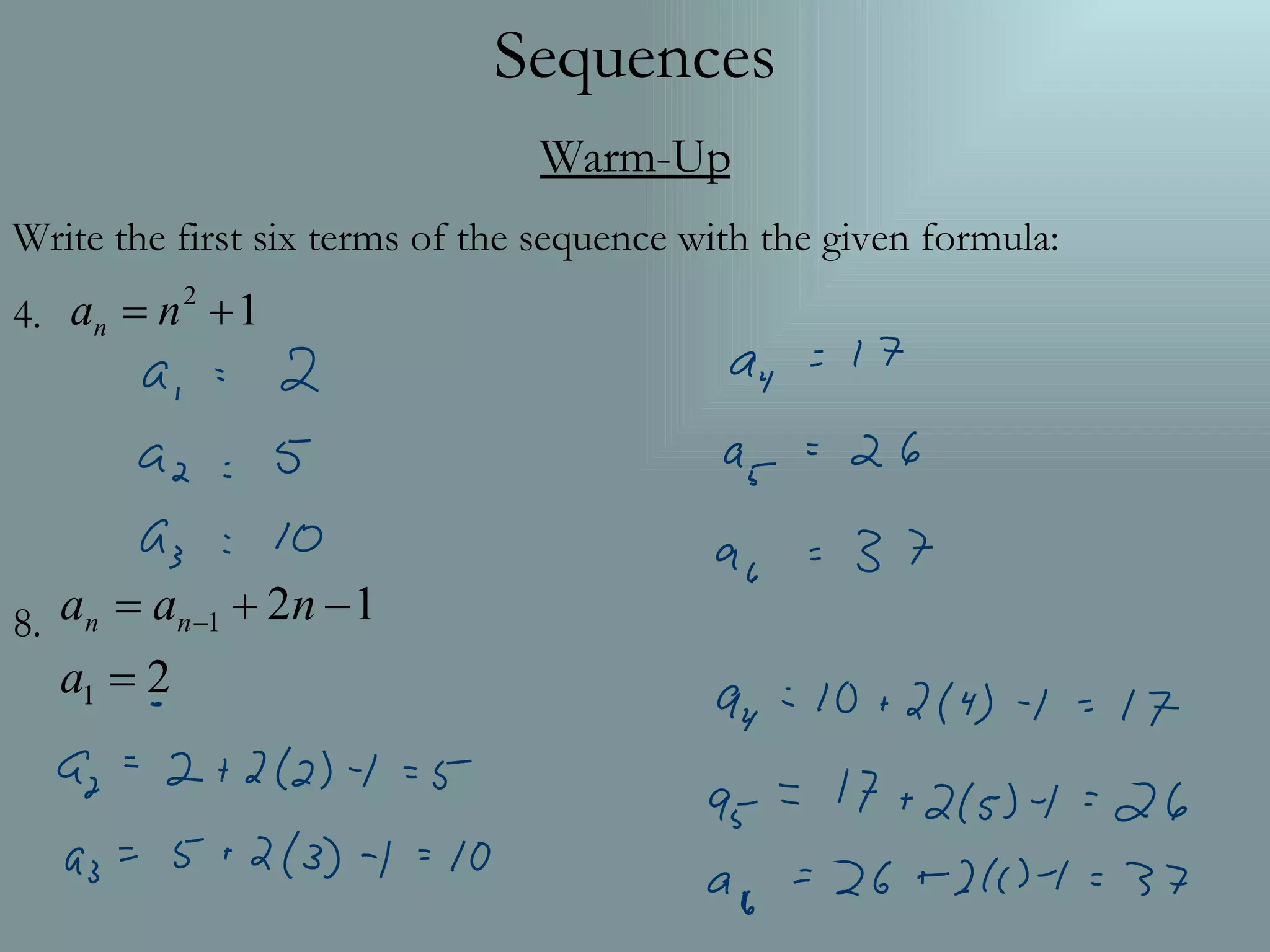 The document discusses different types of sequences including arithmetic and geometric sequences. It provides examples of explicit and recursive definitions for sequences. Specifically, it gives the first six terms of the sequence defined by the formula in the problem and examples of explicit and recursive definitions for arithmetic sequences with a first term and constant difference and geometric sequences with a first term and constant ratio.