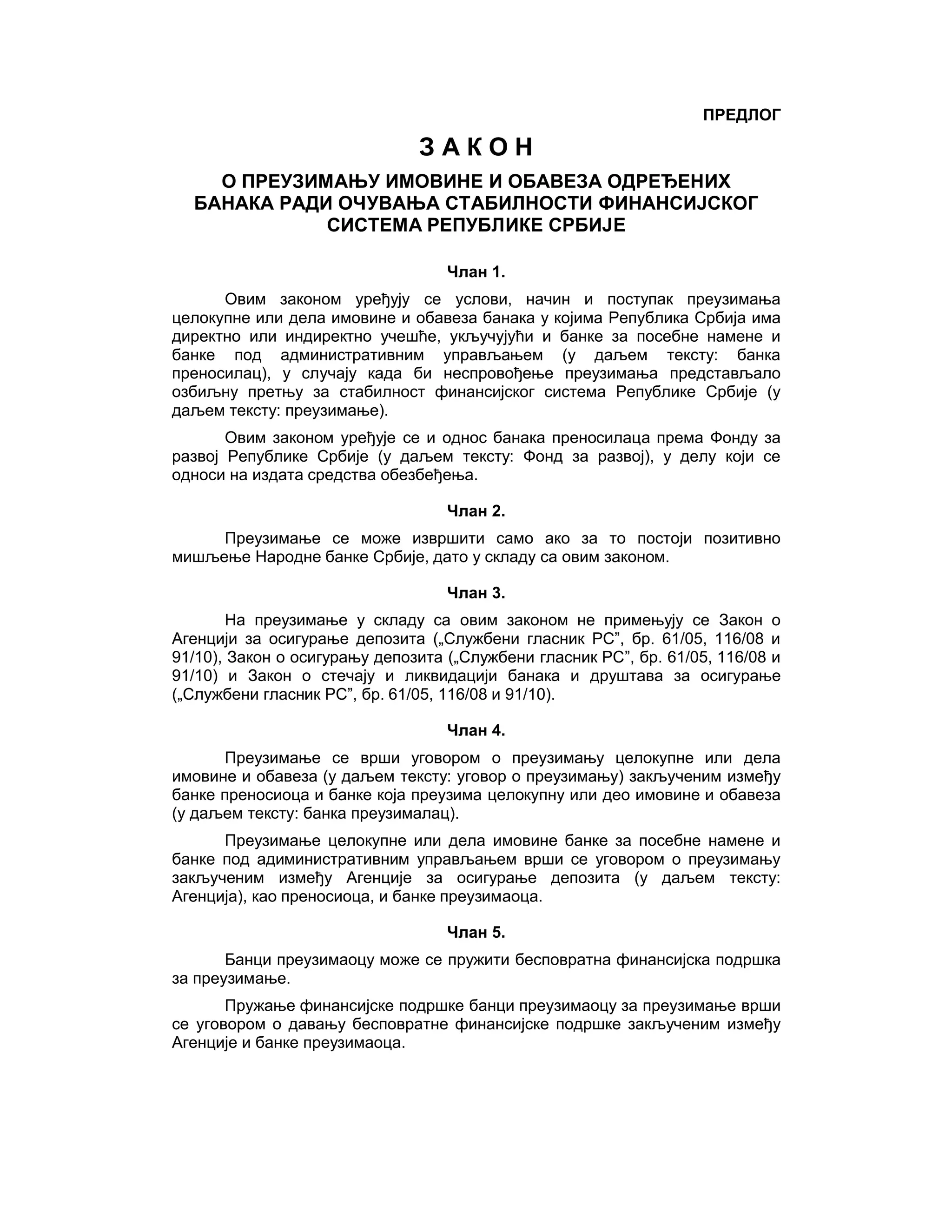 О ПРЕУЗИМАЊУ ИМОВИНЕ И ОБАВЕЗА ОДРЕЂЕНИХ