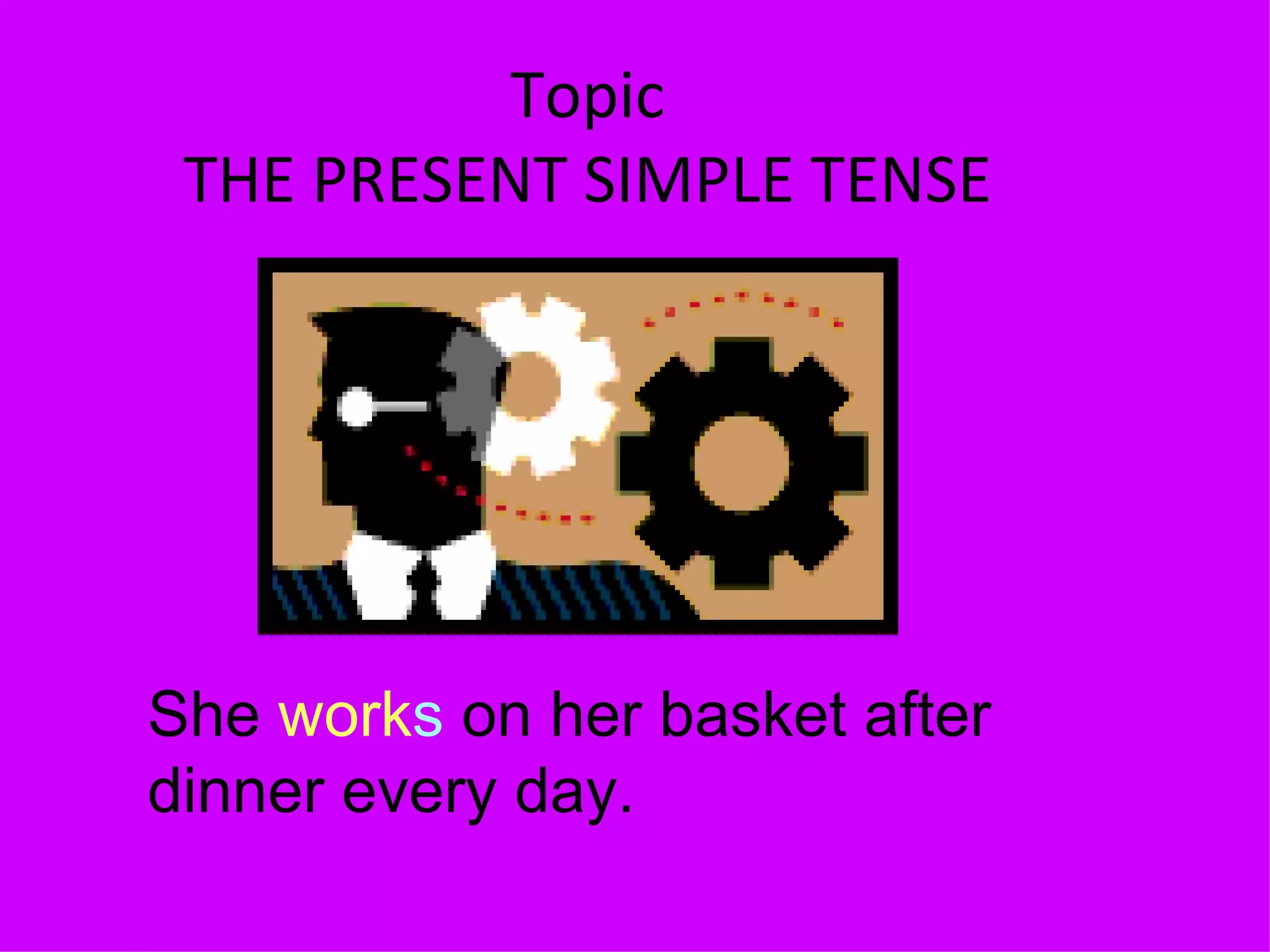 1. The document provides information about the present simple tense including its affirmative, interrogative, and negative forms.