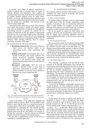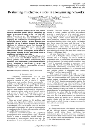This document summarizes a research paper that proposes a system called Nymble to address the problem of restricting mischievous users in anonymizing networks. The key points are: