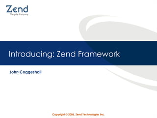 The document introduces the Zend Framework. It discusses that the framework is a collection of PHP classes based on PHP 5 best practices. It aims to simplify common tasks, provide a starting point for applications, and demonstrate PHP 5 best practices. The goals of being an industry-leading framework, requiring few dependencies, and having a minimal object hierarchy are discussed. Reasons for creating another framework include keeping PHP competitive and providing clear licensing. Key aspects of the framework like licensing, installation, MVC pattern, input filtering, mailing, and searching are briefly summarized.