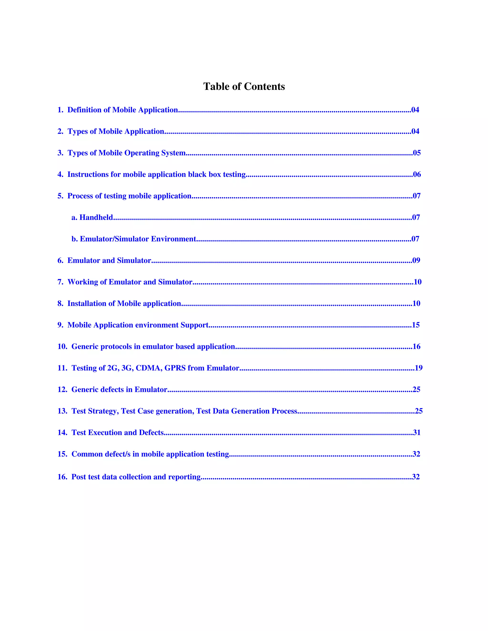(2) Outlines the steps for mobile application black box testing which includes system study, test plan/scenario preparation, test case design, test environment setup, test case execution, and defect/test report preparation. Critical factors are use of test automation and emulator/actual devices.
