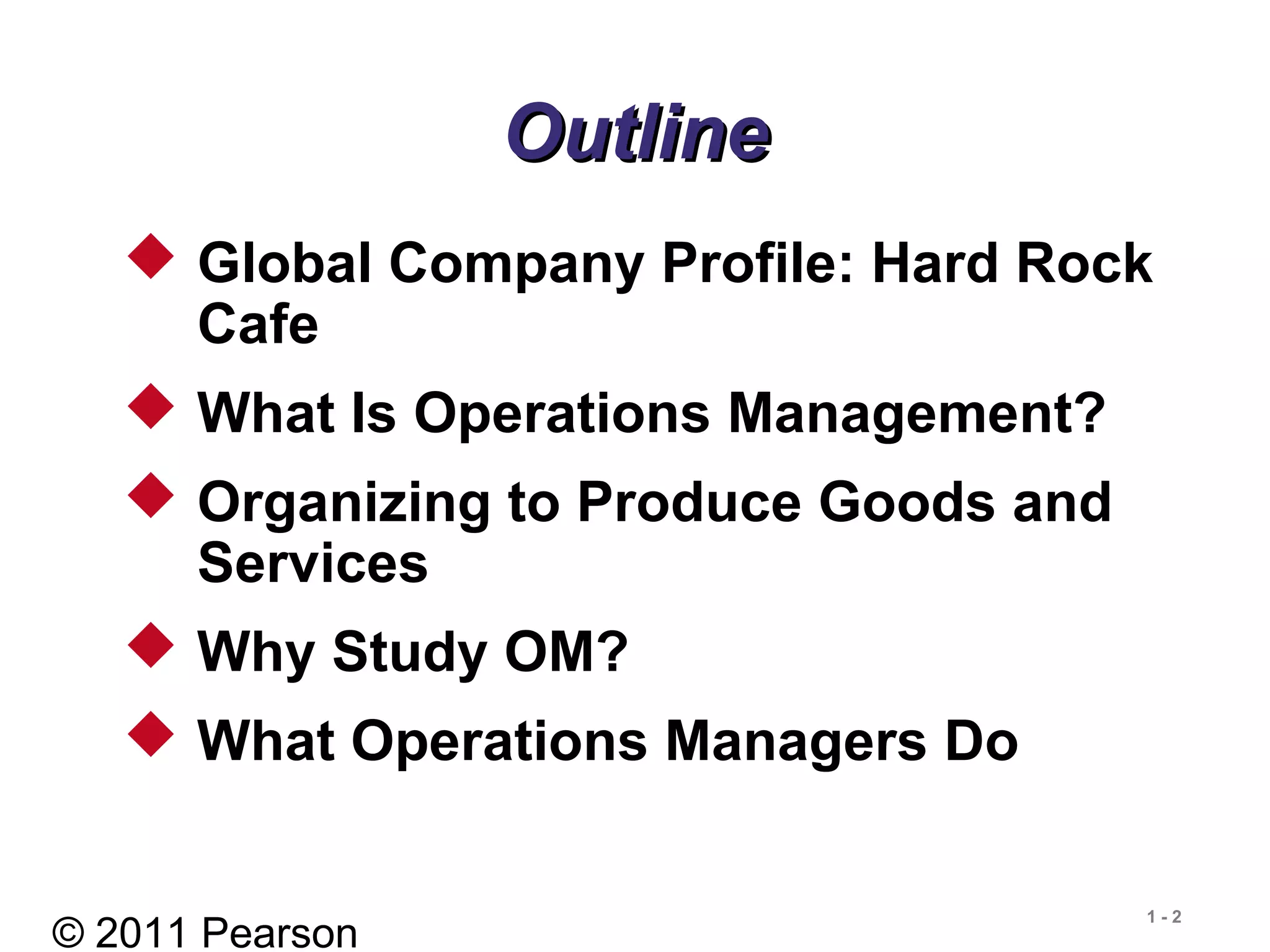 This document is a PowerPoint presentation that outlines the key topics to be covered in a chapter on operations and productivity. The presentation covers the definition of operations management and how organizations are structured. It discusses important historical contributors to operations management such as Eli Whitney, Henry Ford, and W. Edwards Deming. Additionally, it compares characteristics of goods and services, noting the growth of the services sector. Productivity measurement and challenges are also outlined. The overall document provides an overview of the chapter's content and learning objectives.