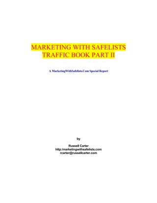 This document discusses how some marketers criticize safelists as ineffective for advertising, but then promote their own list-building systems that function very similarly to safelists. Two examples are given: The List Machine, which allows users to build their own opt-in lists but only mail to members they subscribed, and Opportunity.com created by a successful marketer John Reese, which allows getting thousands of new leads each week in a similar way to safelists. The author argues these systems are really just "safelists with a twist", using opt-in mechanics but serving the same purpose as traditional safelists.