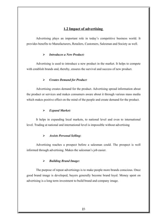 1) The document discusses the planning and execution of advertising campaigns. It outlines factors to consider like the organization, budget, product, consumers, competitors, and media.
