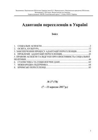 Адаптація переселенців в Україні №37 (78) (7-13 вересня 2017 р.)