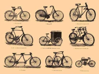 Документ описывает историю и различные виды велосипедов, начиная с первых моделей, разработанных в 1495 году Леонардо да Винчи. Он выделяет важные этапы развития велосипедов, включая изменения в конструкции и использовании. В настоящее время велосипеды классифицируются по назначениям и особенностям, включая дорожные, спортивные и специализированные модели.