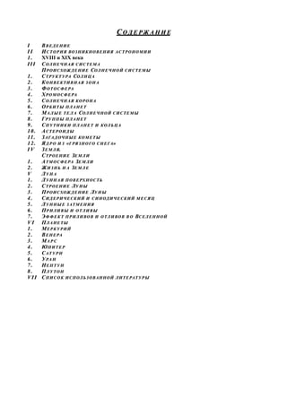 Документ представляет собой обзор истории астрономии и солнечной системы, описывая ключевые моменты, включая создание телескопа, развитие геоцентрической и гелиоцентрической моделей, а также основные этапы эволюции астрономических знаний. Обсуждаются происхождение солнечной системы, структура Солнца и ее атмосферные слои, включая фотосферу и корону. В заключение подчеркивается, что изучение космоса продолжает вызывать интерес у человечества, несмотря на накопленные научные достижения.