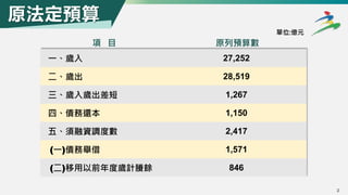 113年度中央政府提出追加預算案,主要因俄烏戰爭導致燃料價格上漲,為穩定電價和支持台電公司的經營,預算由原來的28,519億元增加至29,519億元。此次追加預算需以舉債1,000億元來應對,並預期將不會增加長期債務。預算透過財源平衡,確保台電公司能持續供電。