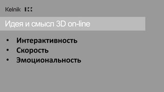 Документ описывает решение задач взаимодействия между заказчиками, дизайнерами и пользователями в контексте 3D-услуг. Основное внимание уделяется созданию удобного сервиса, который удовлетворяет потребности всех сторон, включая быстрое производство и универсальные инструменты для дизайнеров. Также упоминаются примеры мероприятий и рекламные стратегии для привлечения аудитории.