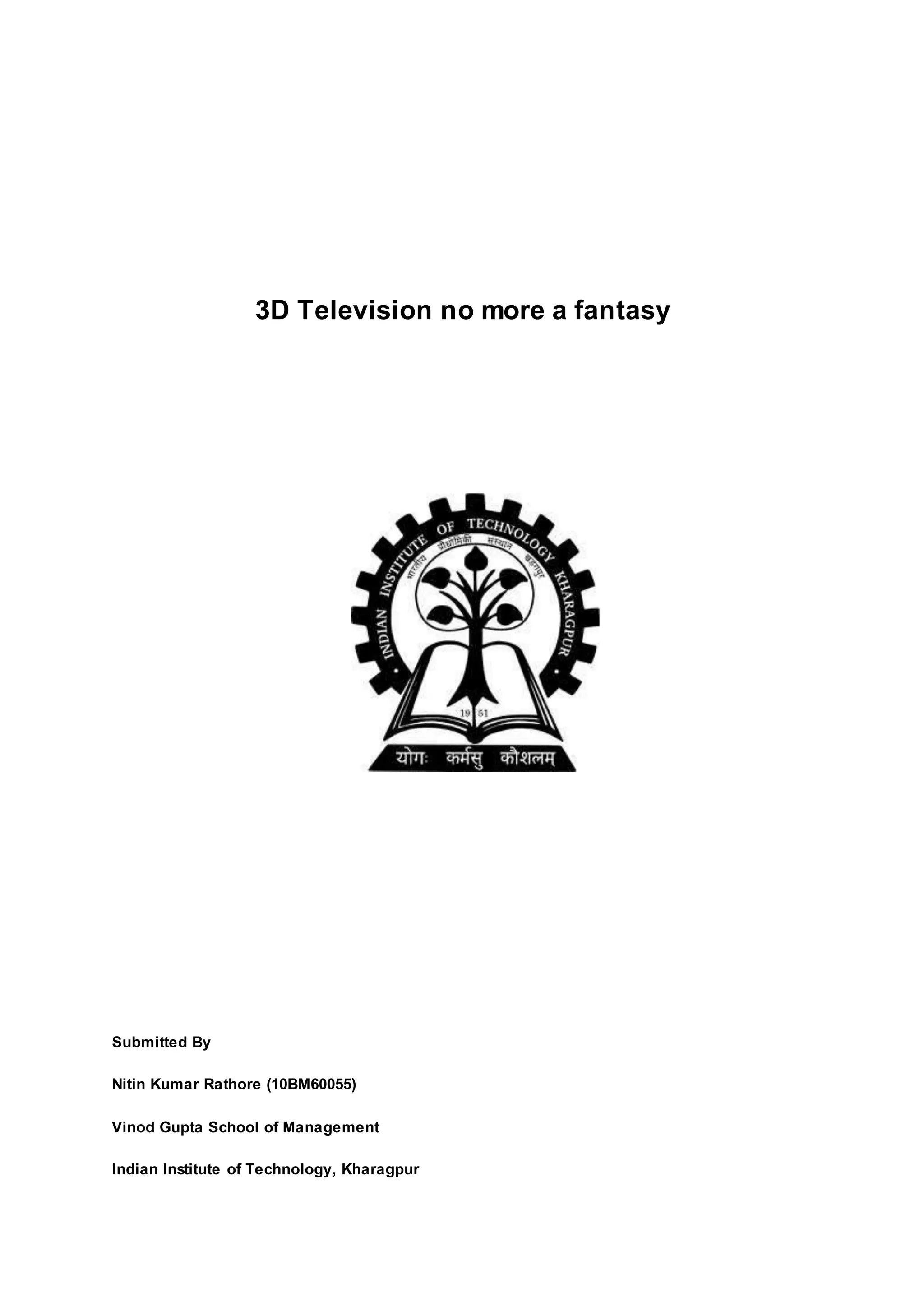 3D television technology has progressed significantly from early experiments in the 1940s. Current popular methods for 3D TV include stereoscopy using glasses to separate images for the left and right eyes. Holography offers the most realistic 3D effect by replicating the entire light field, but requires immense processing power. Major players in the 3D TV market today include Samsung, Panasonic, and Sony, who offer large-screen LCD and plasma models with support for 3D content from multiple sources. However, the ideal 3D display would eliminate issues like eye fatigue and the conflict between eye focus and convergence.