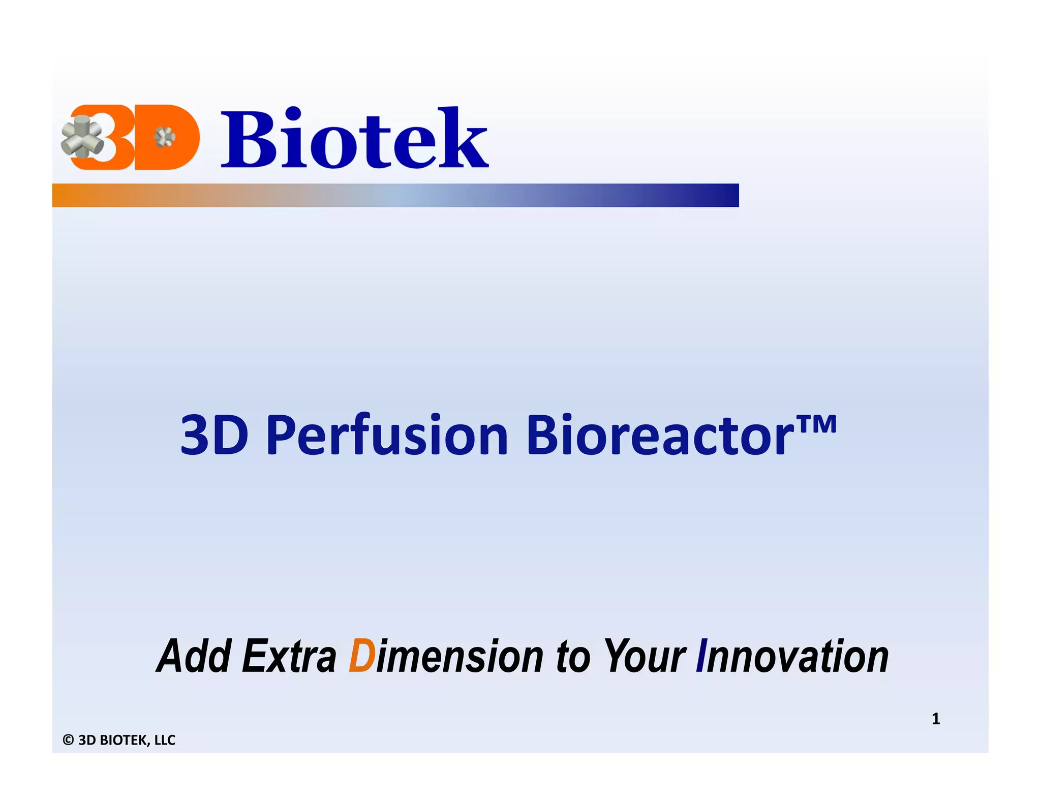 The 3D Perfusion Bioreactor™ is an innovative tool for dynamic cell culture and bioprocessing, utilizing a simple design with minimal parts for efficiency. It features proven 3D insert technology, adjustable perfusion velocities, and offers applications in tissue engineering, drug discovery, and bioprocessing. The bioreactor supports various scaffold types and is designed for enhanced cell viability and proliferation.
