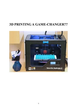 This document discusses 3D printing technologies and their applications. It describes common 3D printing processes like stereolithography, digital light processing, material jetting, and selective laser sintering. The advantages of 3D printing include customization, increased productivity through rapid prototyping, affordability compared to traditional manufacturing, and applications in education, dentistry, and healthcare. However, 3D printing also faces limitations such as restricted object sizes, limited raw materials, and potential for copyright violations or producing dangerous items.