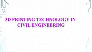 This document contains information about 3D printing from two individuals - Anjali Deshmukh and R. Arun, both from the Civil Engineering department. It discusses the benefits of 3D printing such as reducing costs by finding design errors earlier. 3D printing allows functional product models to be created, helping identify issues like poor fit or ergonomics. The document also examines why 3D printing has not been applied to building construction yet and outlines some of the advantages it could provide such as reduced costs and timelines as well as increased design freedom and functional integration.