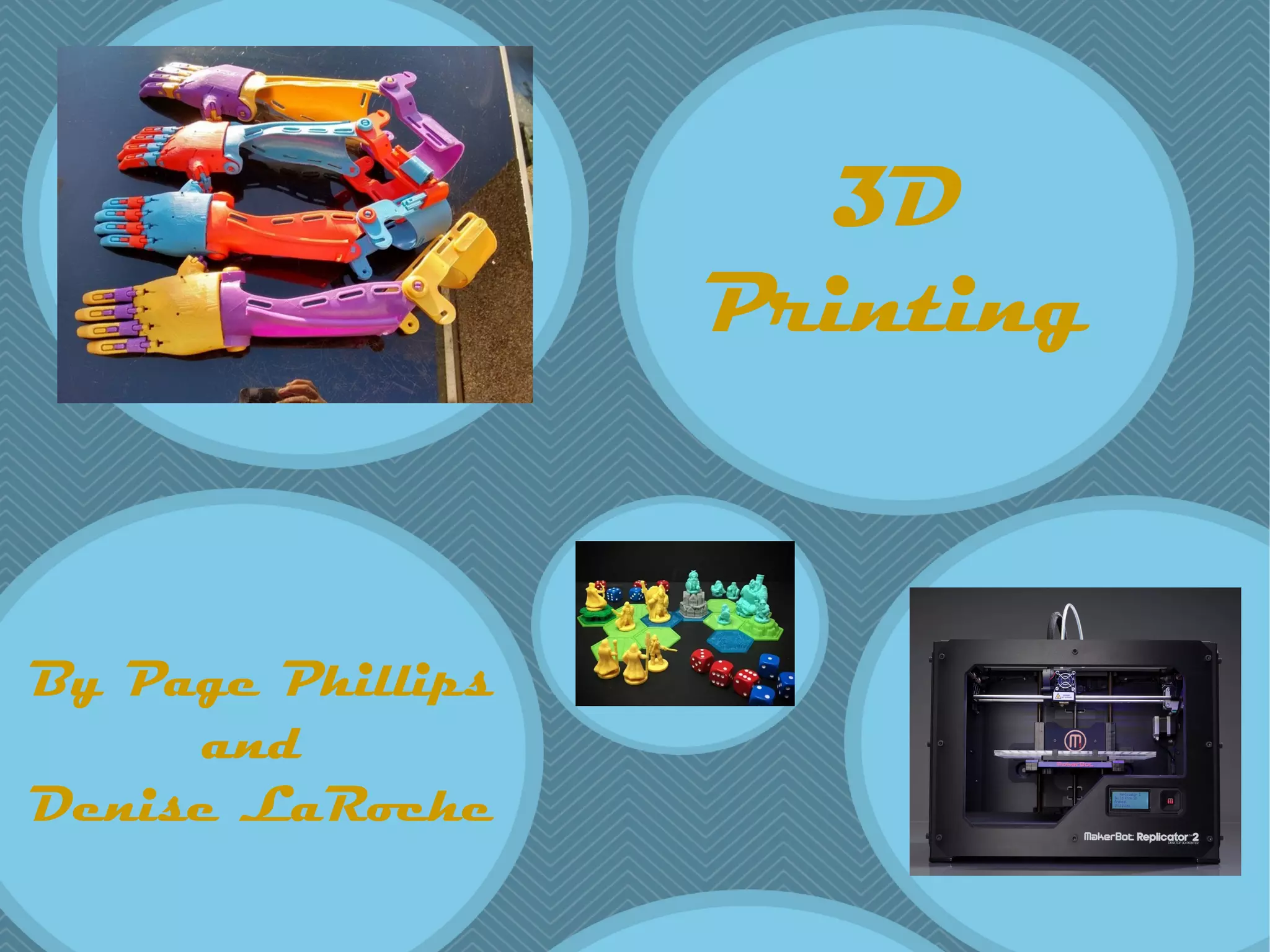 3D printing is an additive manufacturing process that builds 3D objects by laying down successive layers of material. It allows for reasonably inexpensive and quick manufacturing of prototypes and designs. There are several common types of 3D printing that use different materials like plastic or metal. Makerbot provides an affordable desktop 3D printer called the Replicator 2 that is available for student use at Simmons College. It uses molten plastic deposition to build objects by extruding melted filament layer by layer. Students can design 3D models using CAD software like TinkerCAD and Thingiverse is a source to find free existing designs.