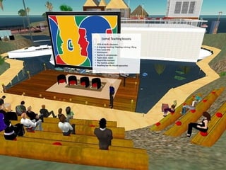 This document summarizes the NIFLAR project, which aims to enrich foreign language education through blended learning using video conferencing and 3D virtual worlds. The project's objectives are to promote networked interactions and study their added value. It involves foreign language learners, teachers, and pre-service teachers. The document outlines the educational potential of these technologies and describes the design of 3D virtual learning environments in Second Life and OpenSim for intercultural competence training and assessment. Pilot experiences have involved academic students, secondary students, and student teachers. Data is being collected from interactions, tests, and surveys to evaluate the approach.