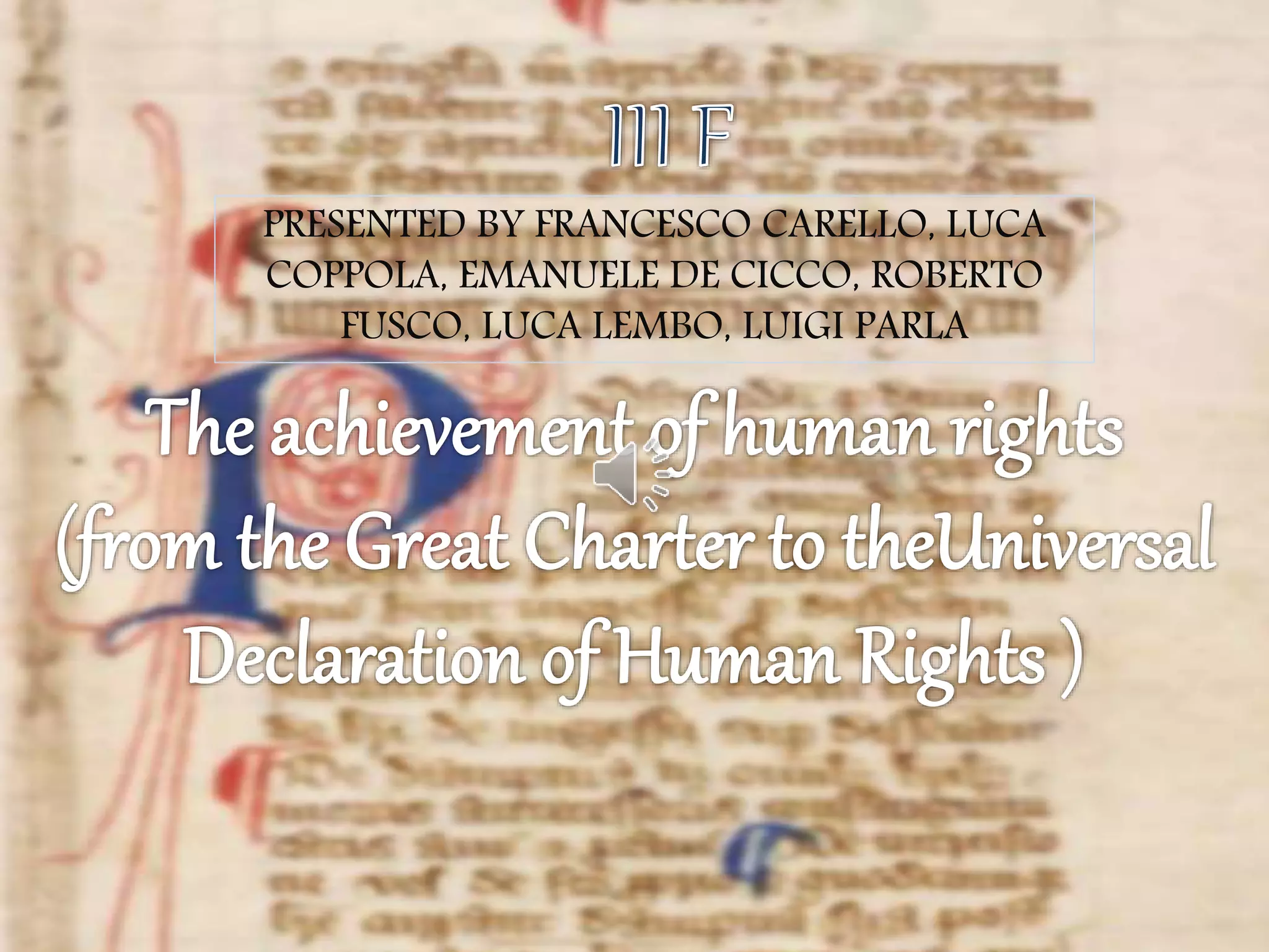 The document traces the historical development of important documents establishing rights and liberties from individuals from rulers, including: