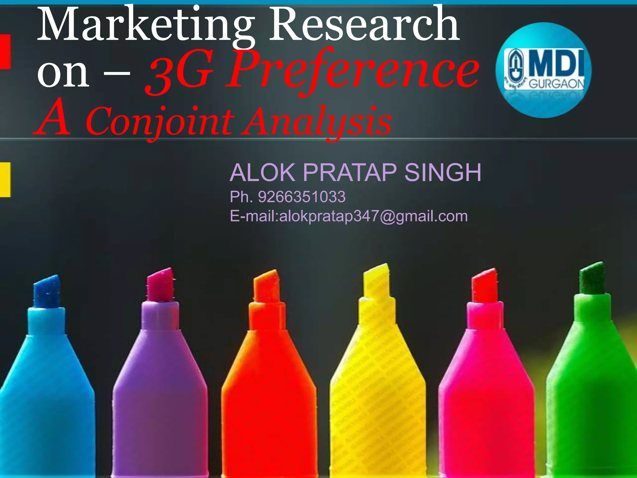 This document presents the results of a conjoint analysis marketing study on consumer preferences for 3G mobile services. The study identified the key attributes that influence consumer choice as connectivity, speed, tariff, company and customer service. The conjoint analysis found that connectivity has the strongest influence on preferences. While tariff is less important than connectivity and speed, customer service has the lowest impact. The utilities scores show that Airtel has the highest utility even with poor customer service due to its strength in other attributes. For competitors to gain market share, the summary suggests improving customer service, lowering tariffs, or enhancing speed.