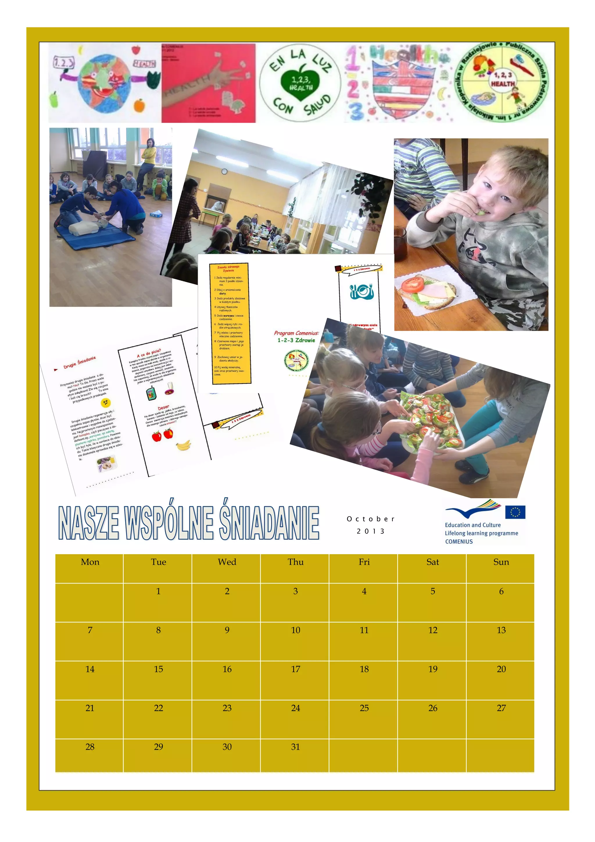 The document is a calendar for October 2013, showing the days of the week and dates for the month in a grid format, with the month and year labeled at the bottom. It displays the days of the week running across the top and dates filling in the grid below from the 1st through the 31st, showing the structure and timeline for the month of October 2013.