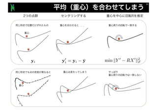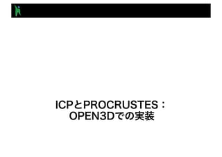 The document discusses various algorithms and techniques for point cloud registration, including the Iterative Closest Point (ICP) algorithm and its variations in aligning 3D point sets. It references numerous studies and methods for optimizing transformations, particularly focusing on point-to-point and point-to-plane distances. Additionally, it details computational approaches and tools available in programming libraries for effective 3D modeling and transformation estimation.