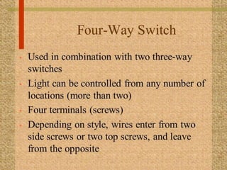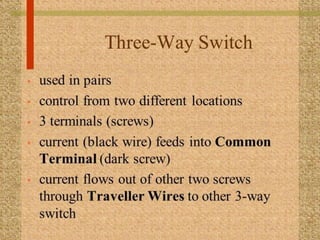 The document describes the Manolo Fortich Technical Skills Development Center's photo switch, which operates automatically using a light sensor. It includes a group activity focused on performing the electrical layout of a specified circuit. Key components in the circuit layout are identified, including power panels, junction boxes, and utility boxes.