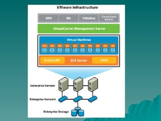 Virtualization allows multiple virtual machines to run on a single physical host computer, improving hardware utilization. This saves on electricity, space, and hardware costs while making it easier to deploy new systems, run legacy operating systems, and test applications in isolated environments. Major companies involved in virtualization include Microsoft, VMware, Linux, Citrix, Apple, and Sun. The industry is moving towards server consolidation and green IT using virtualization to do more with less hardware.