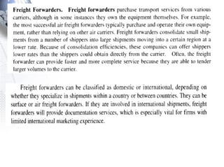 Third party logistics (3PL) involves outsourcing elements of supply chain management to a third party provider. 3PL providers can perform transportation, warehousing, distribution, and other logistics functions. Using 3PLs allows companies to focus on their core competencies while improving efficiency. There are different types of 3PL providers, including asset-based providers that use their own assets and management-based providers that coordinate using other companies' assets. Outsourcing to 3PLs has grown as companies seek to reduce costs and improve supply chain performance.