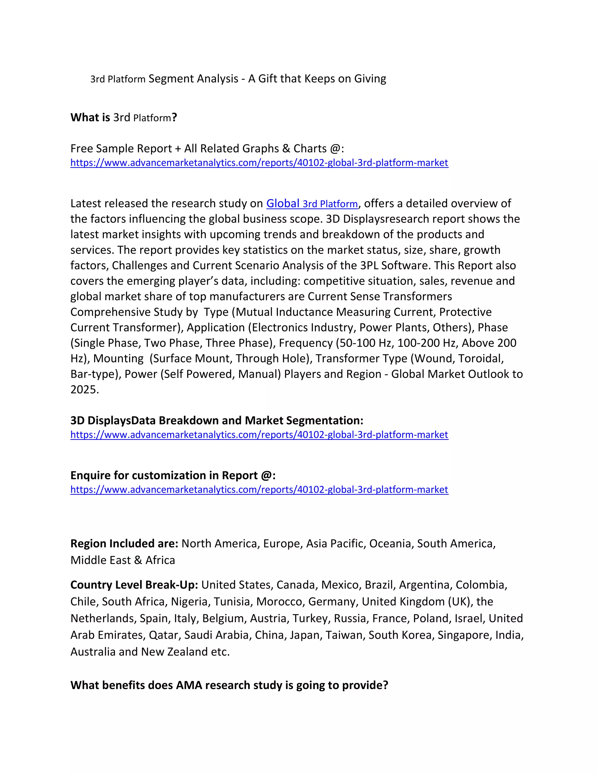 The document discusses 3rd platform technologies, which refers to emerging technologies like cloud, mobile, social media, and analytics. It provides an overview and analysis of the global 3rd platform market. The report examines market trends, opportunities, challenges, and segmentation. It also offers insights into regional analysis and profiles major players in the 3rd platform industry. Customized reports and data related to the market are available on request.