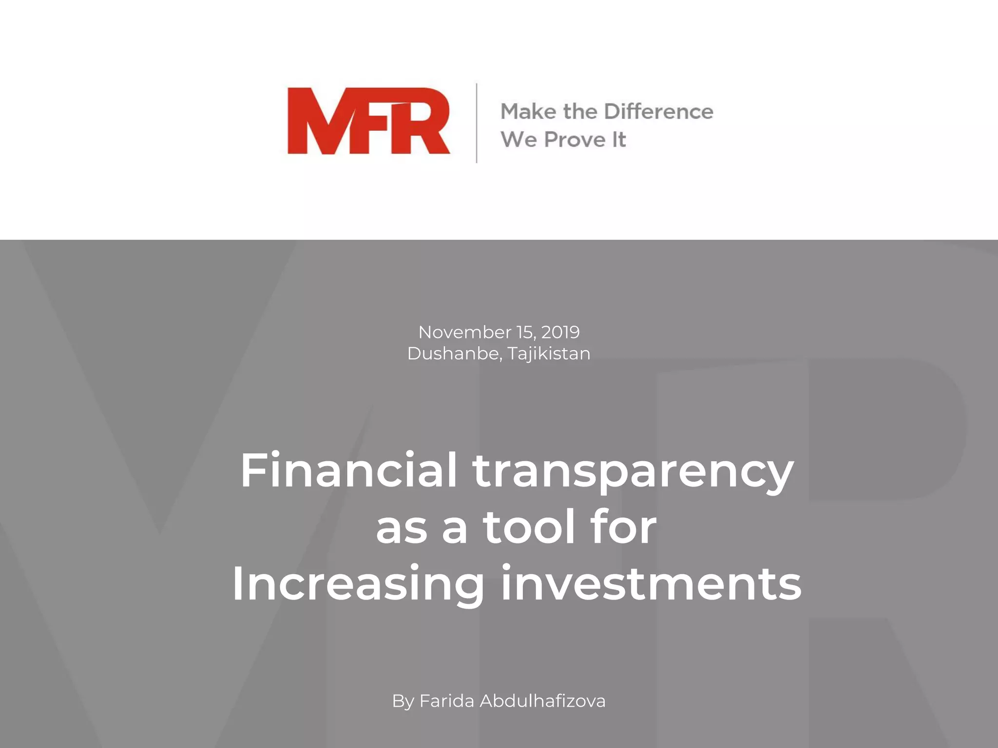 This document discusses how financial transparency can increase investments. It argues that transparency allows organizations to benchmark their performance, improve customer service, increase funding, and boost growth. Transparency tools include management information systems, external audits, ratings, and performance reporting standards. While transparency costs resources, it can reduce costs over time by increasing competition. The document outlines how a financial transparency data platform collects standardized data from over 1,000 financial service providers in 70 countries to allow benchmarking.