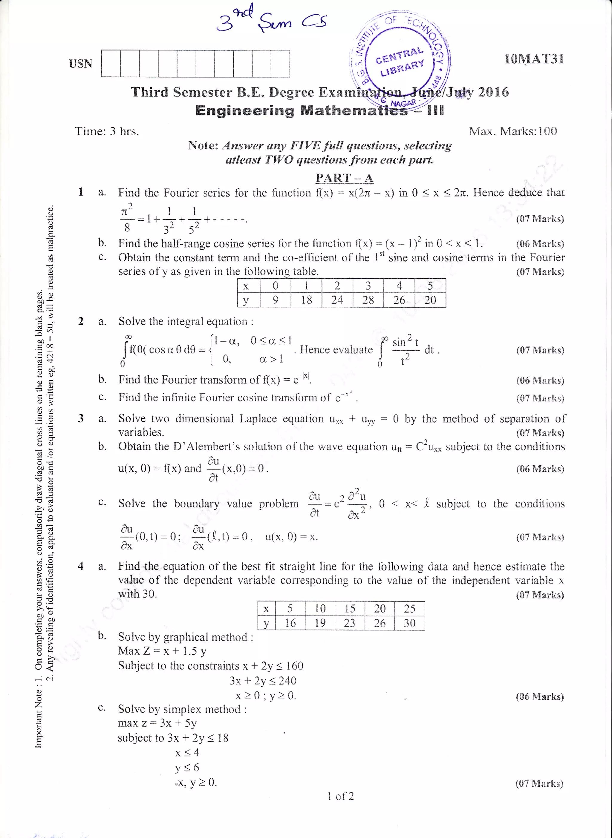 This document contains the details of an examination for a third semester engineering degree. It includes instructions to answer any five full questions selecting at least two from each part. The document then lists 14 questions across two parts (A and B) related to topics in logic design and electronic circuits. The questions cover various concepts including universal gates, Boolean functions, amplifiers, feedback, operational amplifiers, timers and voltage regulators. Diagrams and calculations are included in some of the questions.