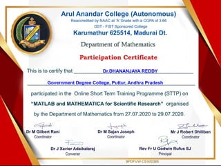 The document provides information about an individual named Dr. Dhananjaya Reddy who works at the Government Degree College in Puttur, Andhra Pradesh, India. His identification number is listed as 9PDFVW-CE000365.