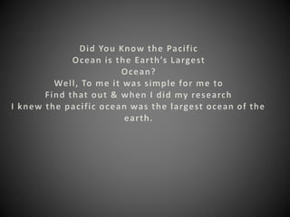 This document discusses the major chokepoints of the Pacific Ocean. It lists four key chokepoints: the Bering Strait, Luzon Strait, Singapore Strait, and Panama Canal. It also provides several additional resources on the geography and locations within the Pacific Ocean.